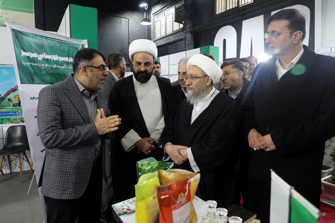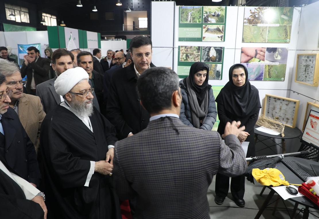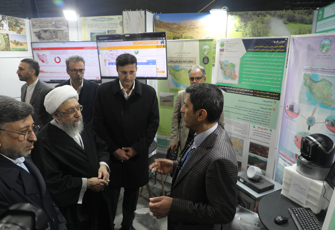 آیت الله آملی لاریجانی در پنجمین روز از هفته منابع طبیعی در سازمان منابع طبیعی و آبخیزداری کشور حضور یافت و ضمن غرس درخت، از نمایشگاه توانمندی های این سازمان بازدید کرد.